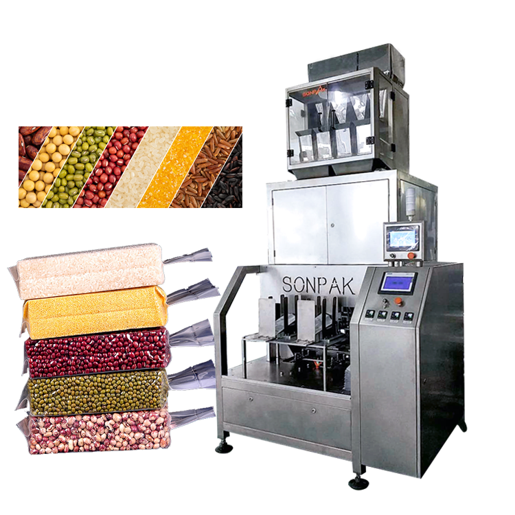 適用于五谷雜糧等形狀均勻、流動(dòng)性較好的顆粒物料的真空整形包裝。全自動(dòng)化,有效節(jié)約生產(chǎn)成本,能自動(dòng)取袋、送袋、開(kāi)袋、上袋、充填、整形抽真空、封口、成品輸出。